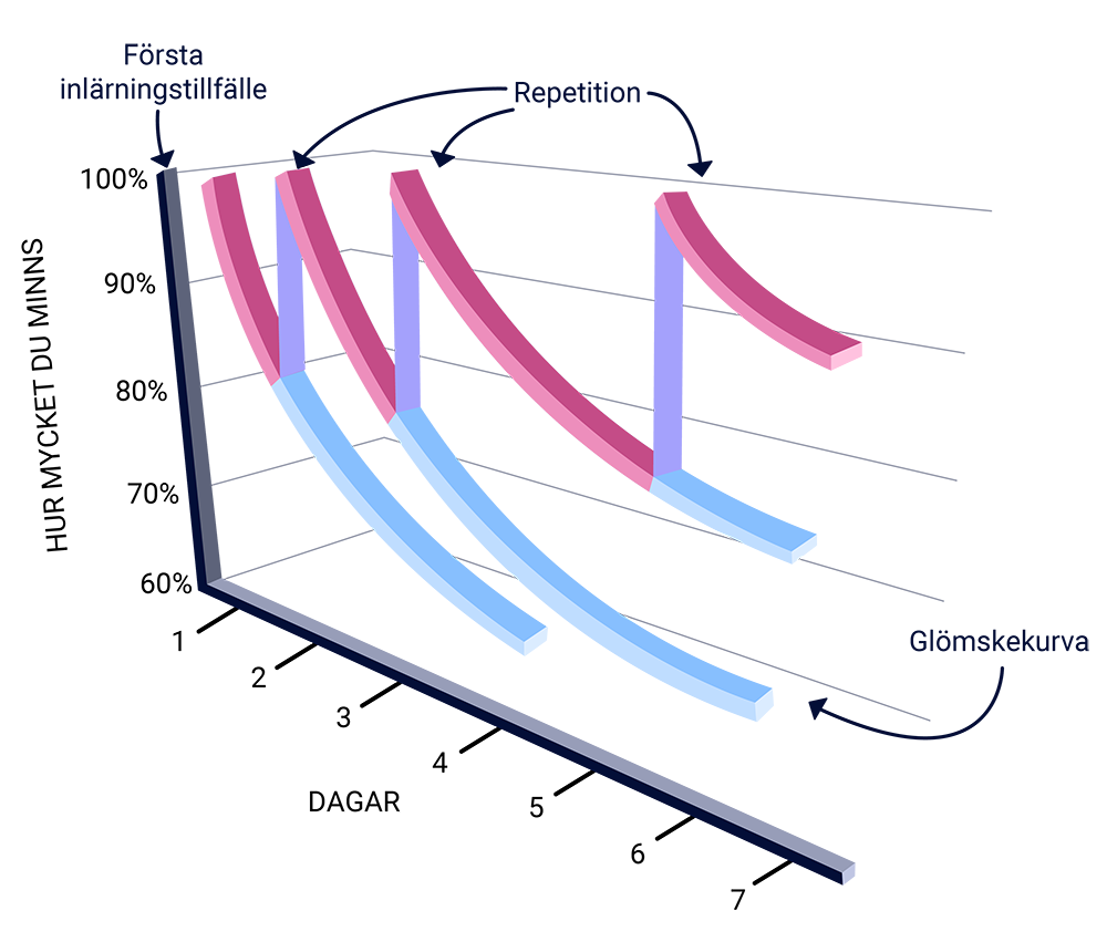 Minnets långtidsinlagring ökar om du testar dig på ett kunskapsområde och upprepar förhören med längre intervaller emellan. Forskning inom kognitiv psykologi har visat att detta är en av de effektivaste metoderna för att minnas kunskap.